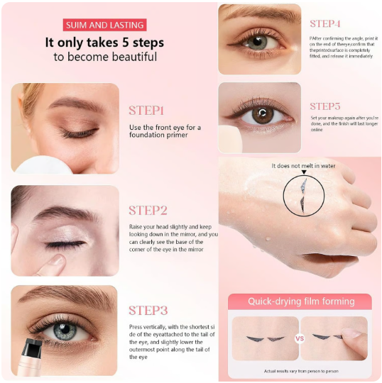 Absolutely! The stamp creates the wing shape for you, so you don’t need makeup skills. Even beginners, shaky hands, and first-timers get clean, even wings.