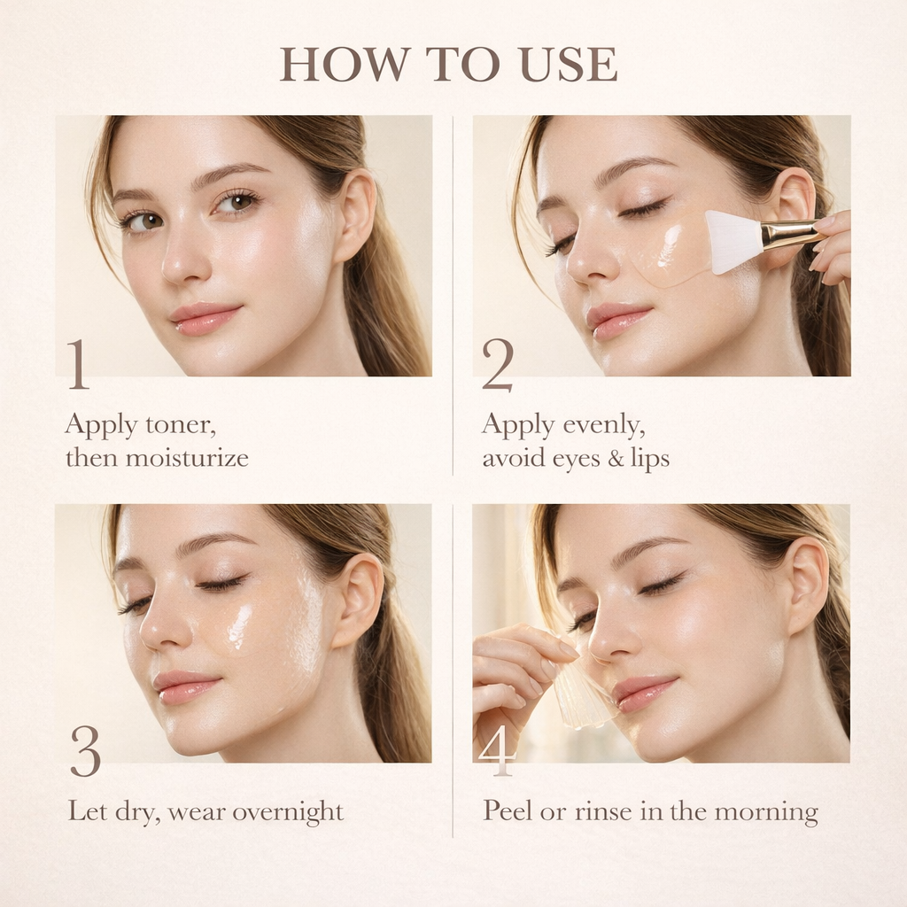 Once it has set, you can gently peel it away in the morning or remove any remaining product while cleansing. The goal is easy removal without making your morning routine complicated.